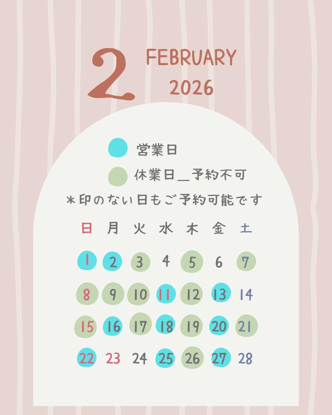 2026年2月〜3月のご予約受付中。